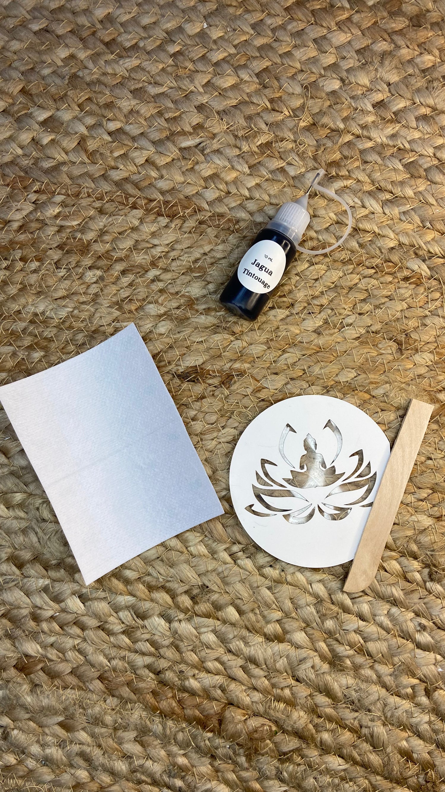 3. Appliquer l'encre, laisser sécher, recouvrir avec un pansement (fournit) et attendre 5 heures.